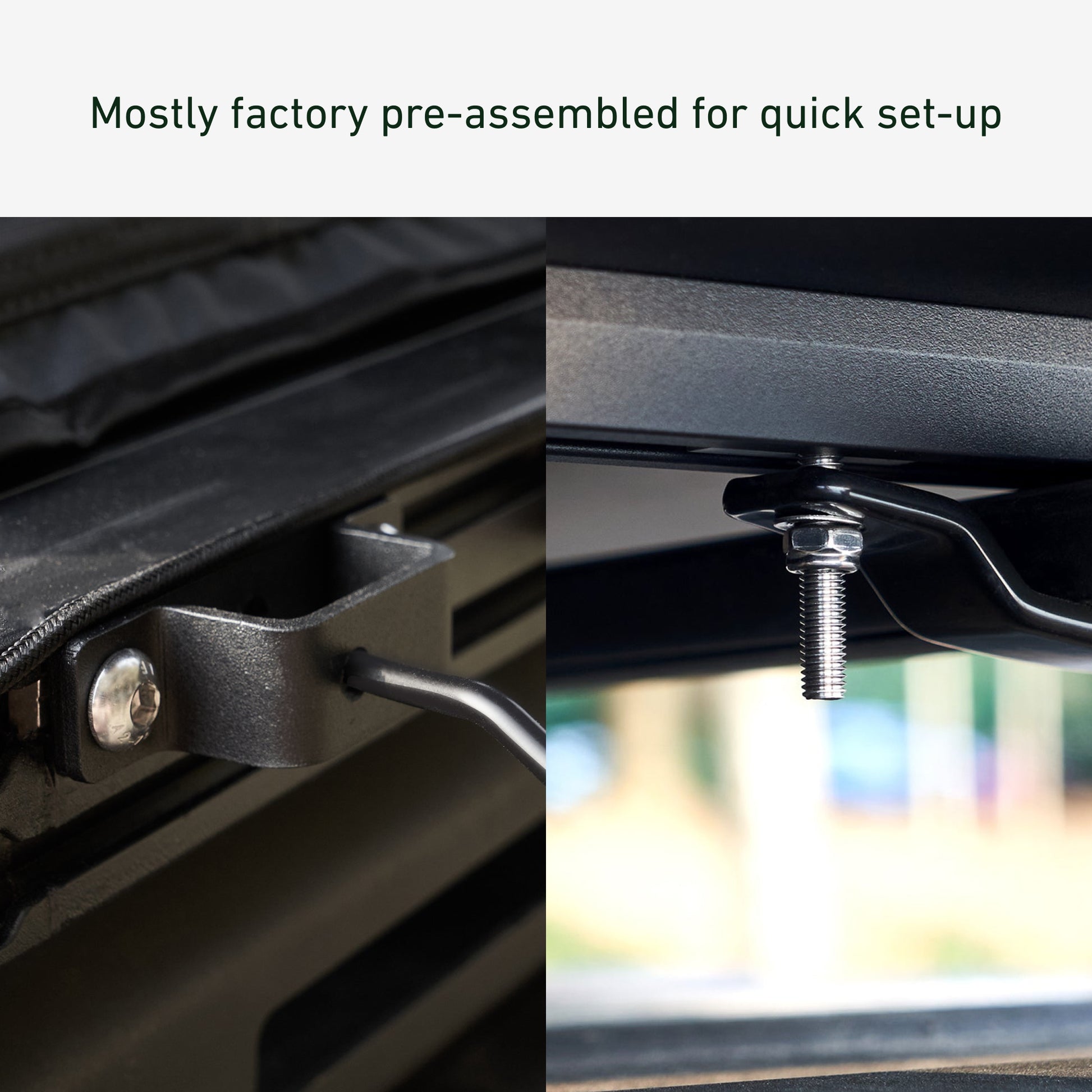 Sturdy roof bars provide convenient storage for recovery gear, solar panels, or other essentials, keeping everything within easy reach. The smart design, with its unique four-point scissor frame, adds an extra window to let in more light, increase headroom, and boost airflow for a more comfortable experience.