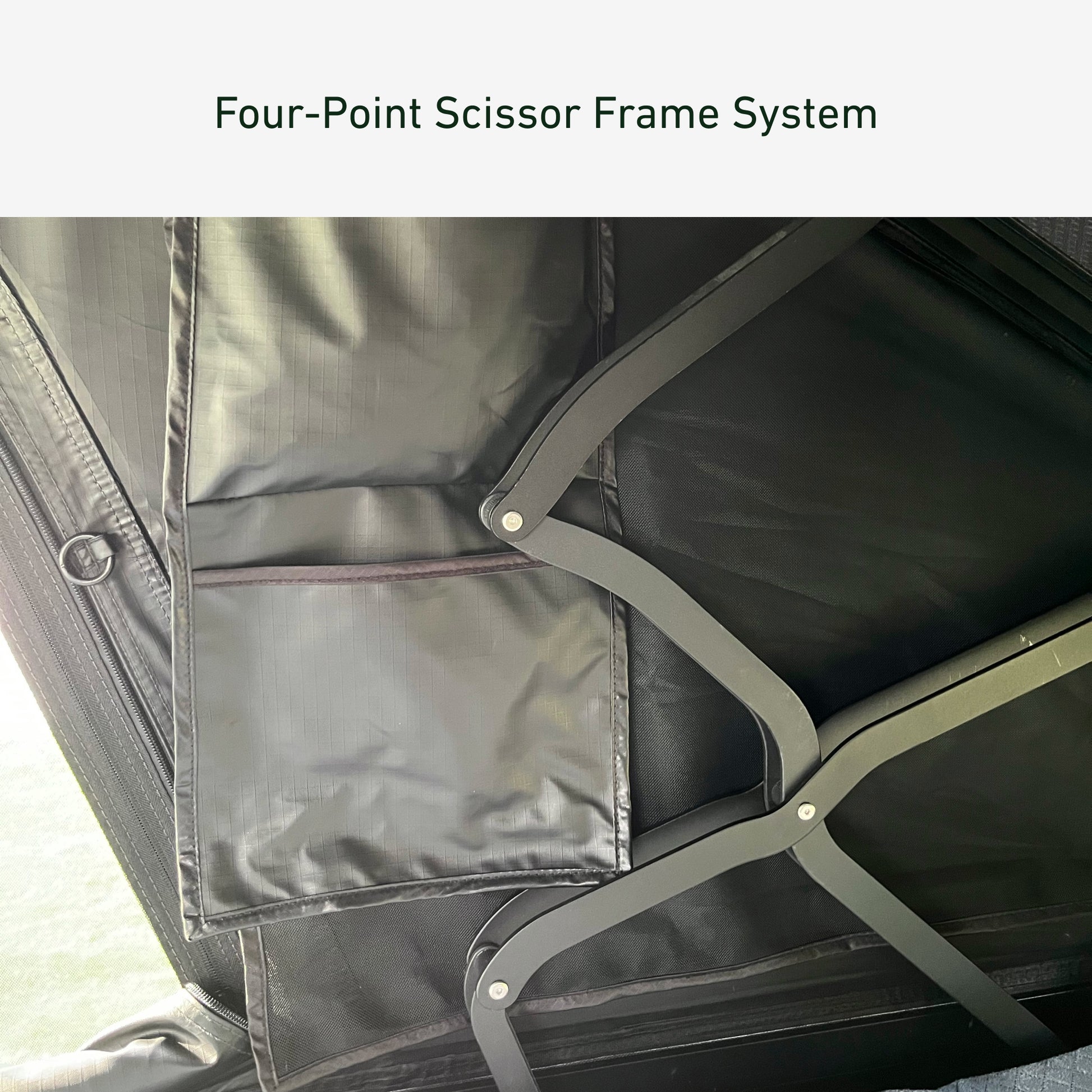- Four-Point Scissor Frame System: Increases internal space, airflow, and durability.